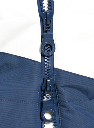 This on-trend design in timeless navy and white has a diagonal split panel and features a detachable faux fur hood trim. It’s part of our 2-in-1 Acclimate™ range which features a 360° zip around the waist that transforms the Oneskee suit into a jacket in seconds, allowing you to use it independently during apres and the milder months. It’s made from our robust SnowSense outer shell fabric and the following technical features: